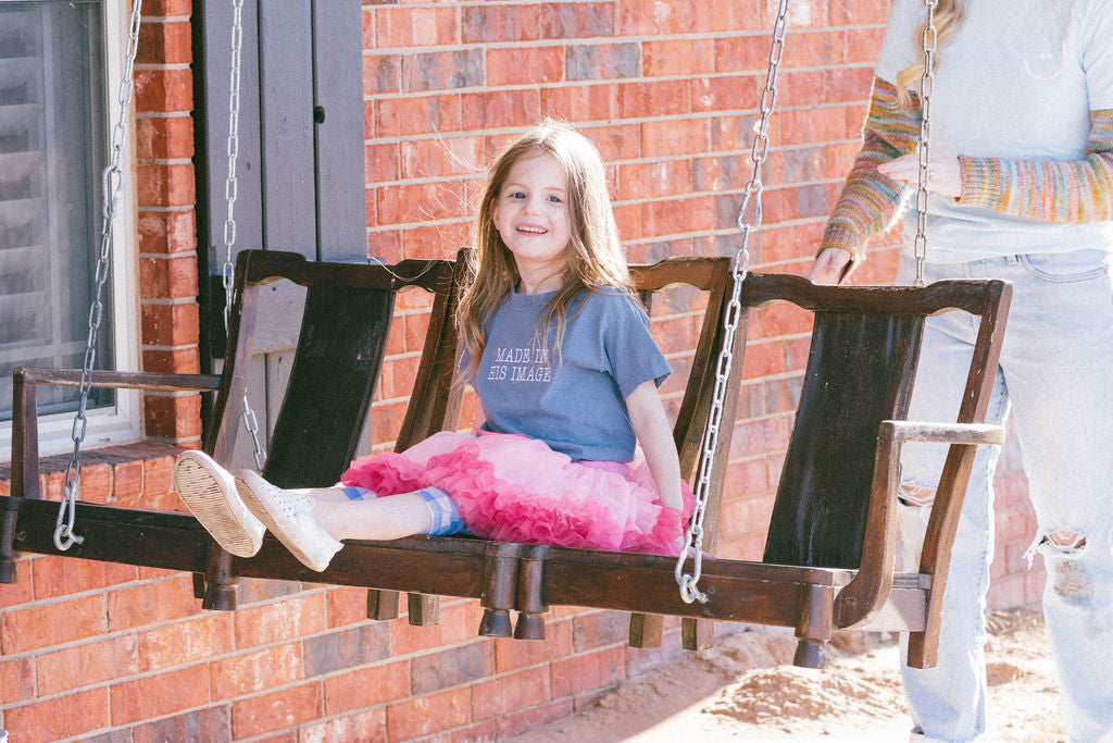 This is our Little blue made in His image T-shirt! It is apart of our planting seeds collection:)